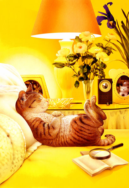 "Можно мне где-нибудь помыться? А то от меня котиками пахнет", - говорил один идиот в фильме "Даун-хаус". От художника Makoto Muramatsu котиками не пахнет, зато он их рисует. В своей собственной, слегка лубочной манере, но получается довольно забавно.