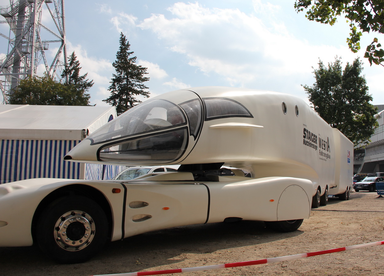 Camel1000: А что собой представляет белый гоночный автомобиль в роли тягача футуристического кемпера? Это экспонат?