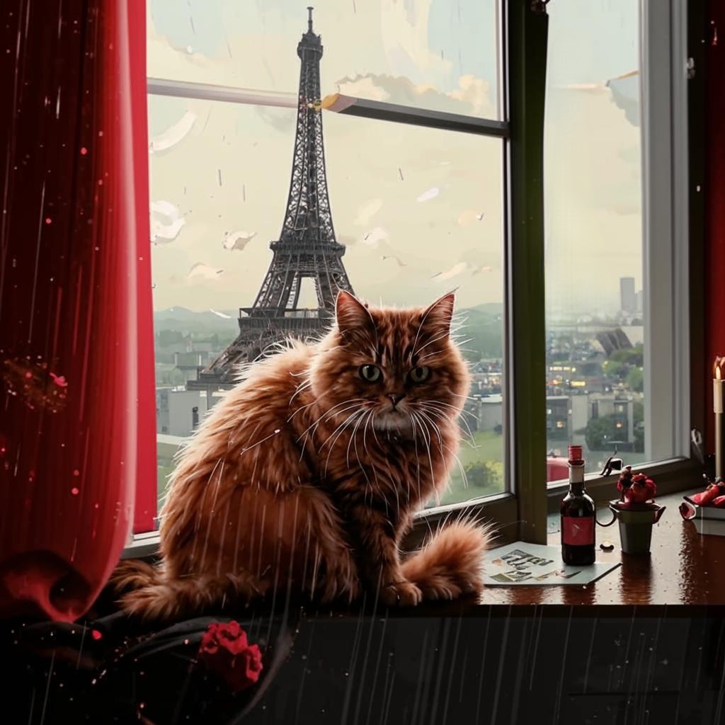 Выражение кота - откуда здесь вторая Эйфелевская башня???