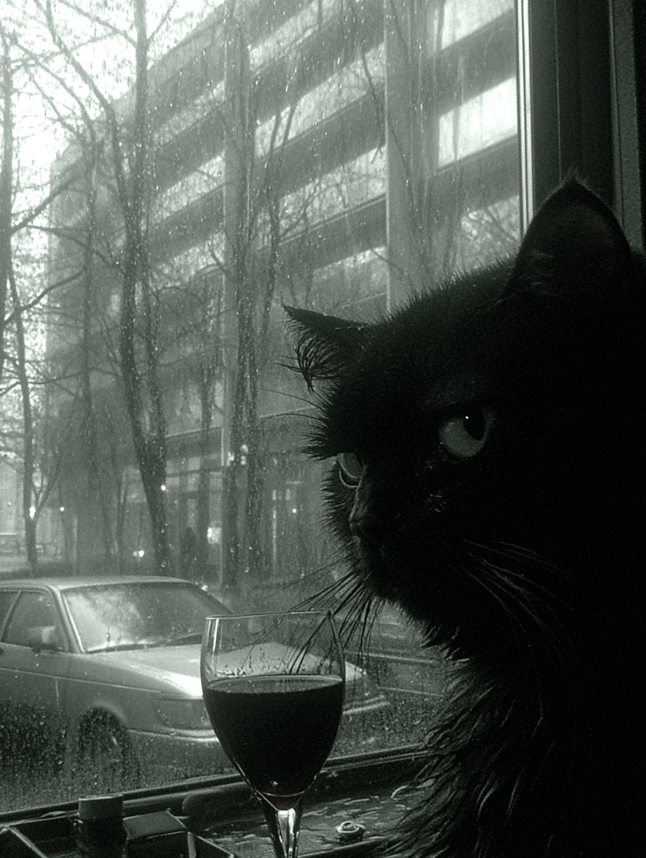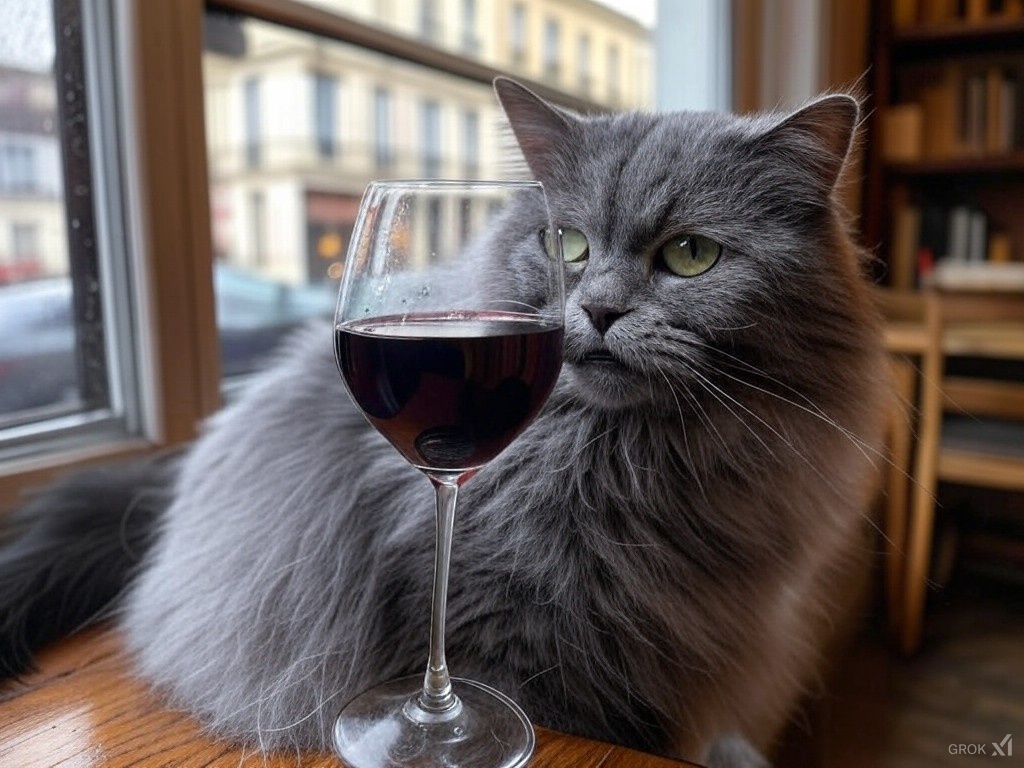 Сравнил, что именно выдают разные ИИ, умеющие генерировать картинки, по одному и тому же запросу - "Generate a realistic image of a fluffy and playful cat sipping red wine by a window on a rainy day in Paris".