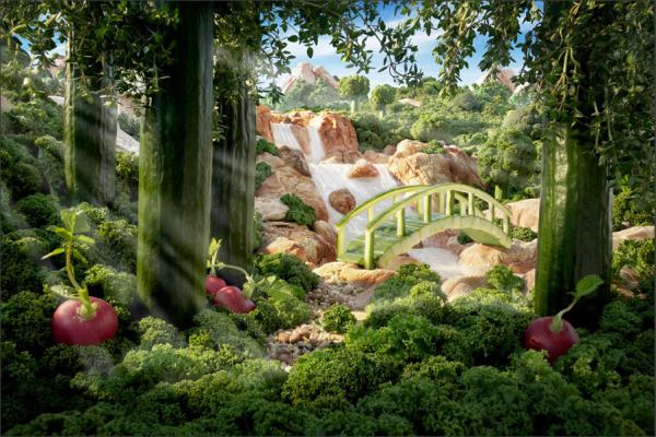 Художник Carl Warner создает свои картины исключительно из пищевых продуктов. Вот так в нем реализуется творческое и одновременно кулинарное начало.