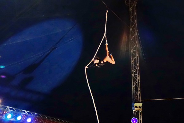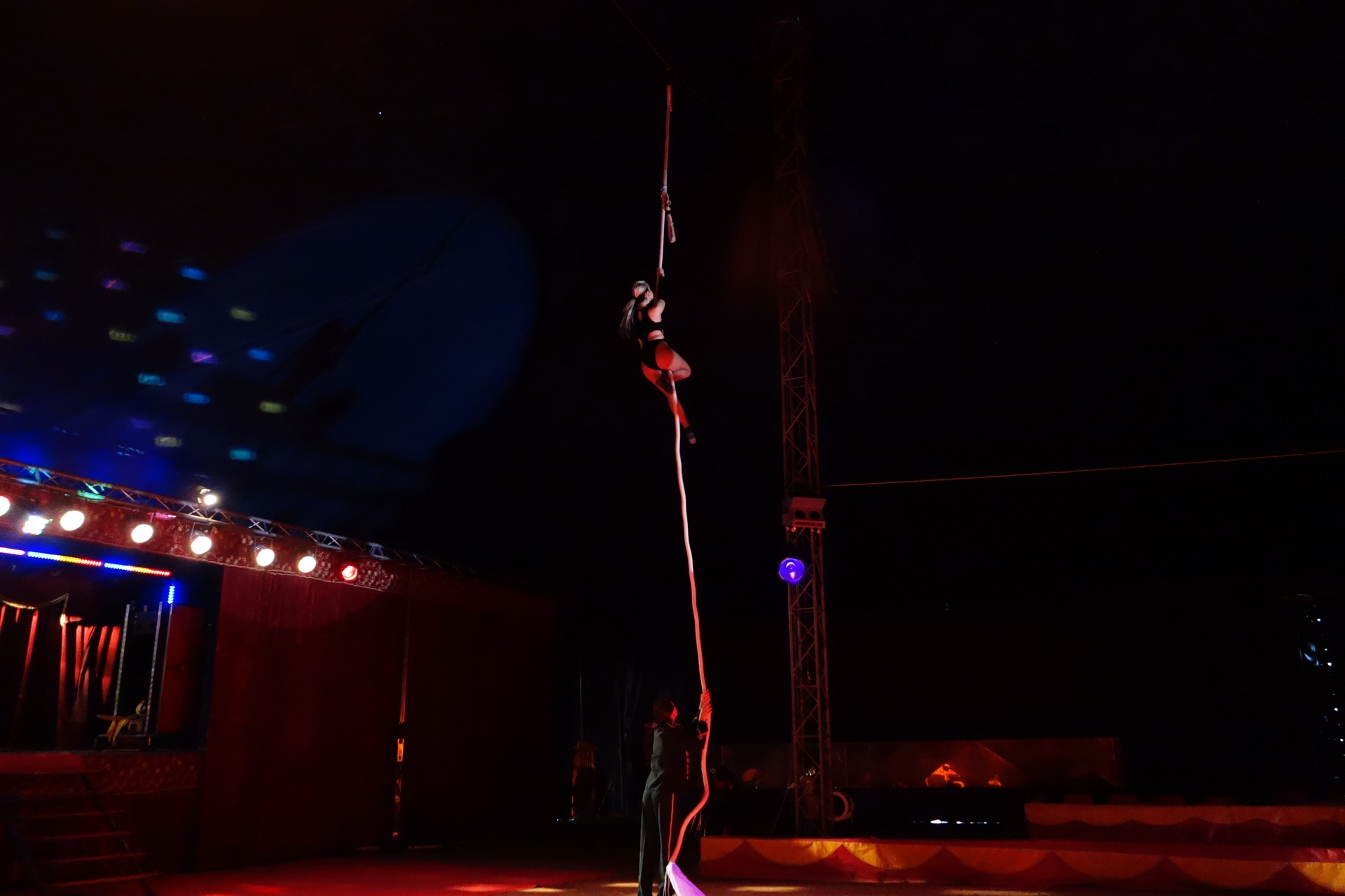 Девушка на канате. Крутилась-вертелась очень эффектно. Ни разу не упала, чем подтвердила свой высокий профессиональный уровень.