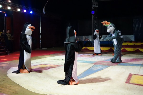Номер с мадагаскарскими пингвинами и королем лемуров я не понял. Вышли, подергались под музыку. Согнали на арену всех детишек, а что им делать - не сказали. Ну и потом еще почему-то вышел Микки-Маус с евонной Микки-Маусихой. Похоже, что эти костюмы они просто купили случайно и еще не придумали, что с ними делать.