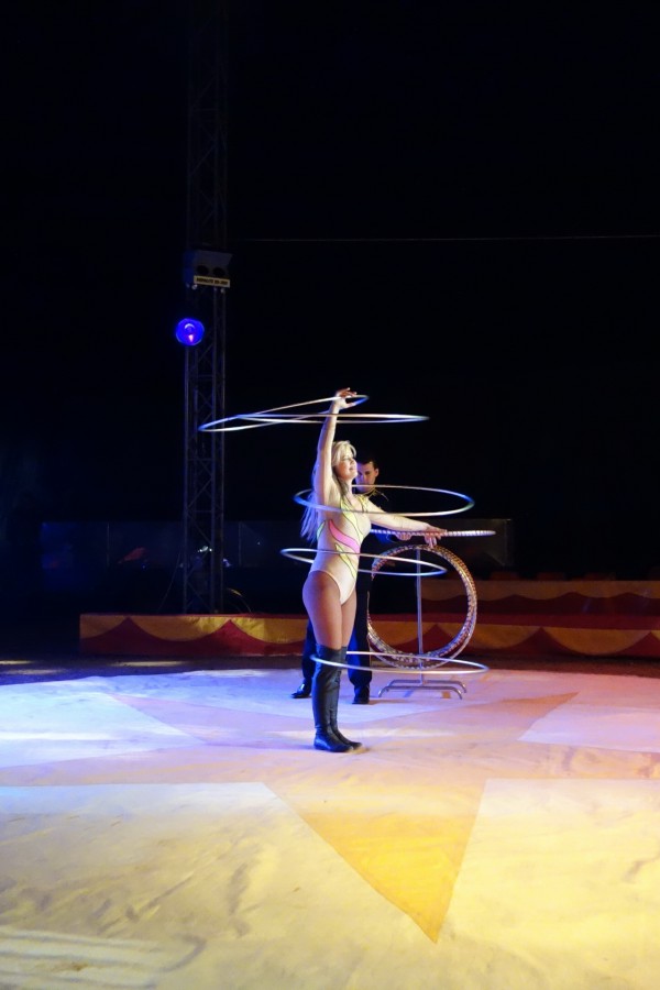 Под конец на нее набросили аж 24 обруча. Практическую пользу кручения подобного количества обручей я не понимаю, но зал хлопал активно.
