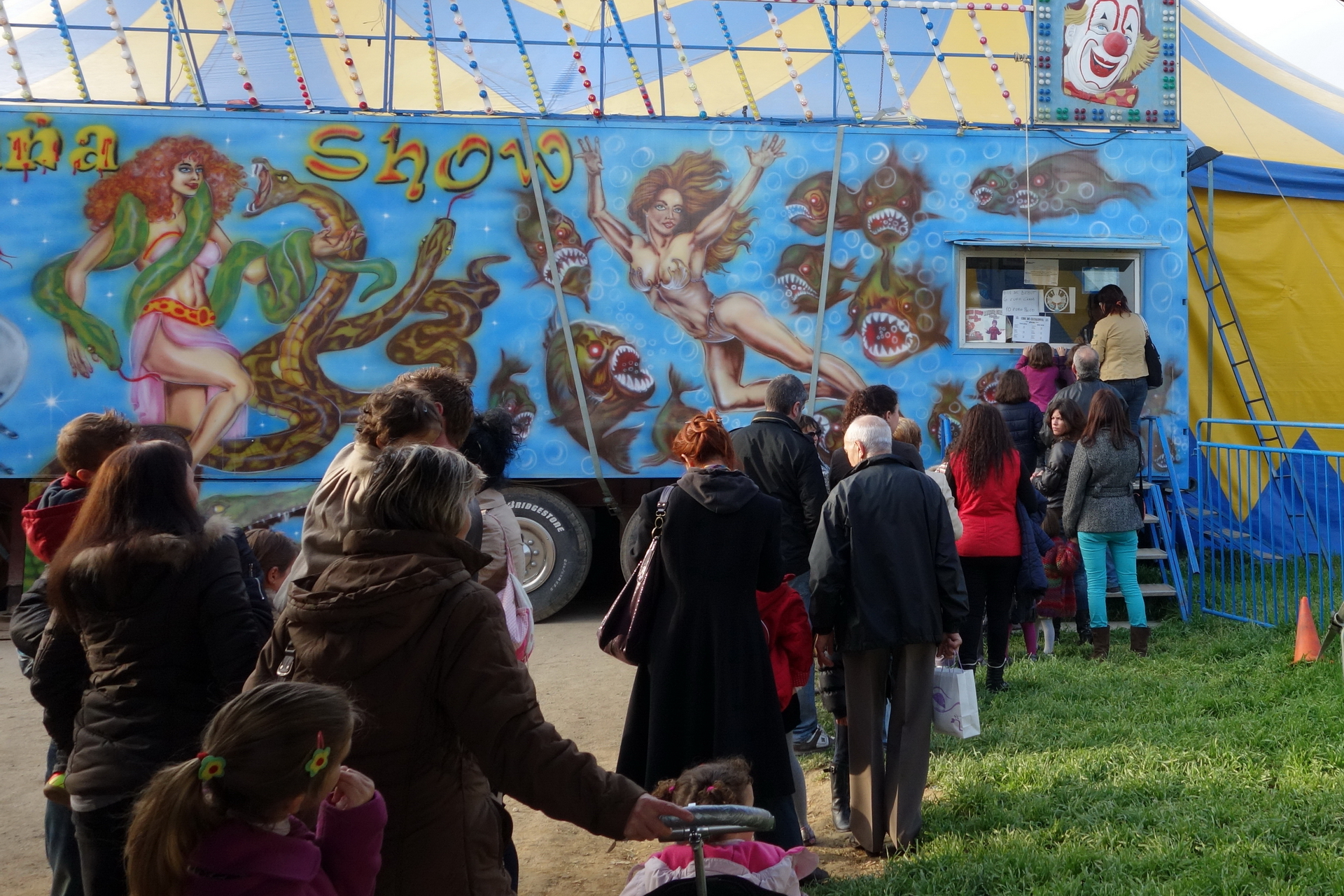 а вот вспоминаю, как в детстве, в наш городок в годах 80-ых заезжали подобные шапито, и даже сейчас помнится как выглядело все это расхристано-обшарпано и натужно... сейчас это бы ассоциировалось со средневековым нищими бродячими труппами в стиле- бородатая женщина, самый сильный (толстый) чувак на свете.... грустновато как-то было..зато мороженное перед представлениями продавалось вкусное, в обычных кафе такого не было )