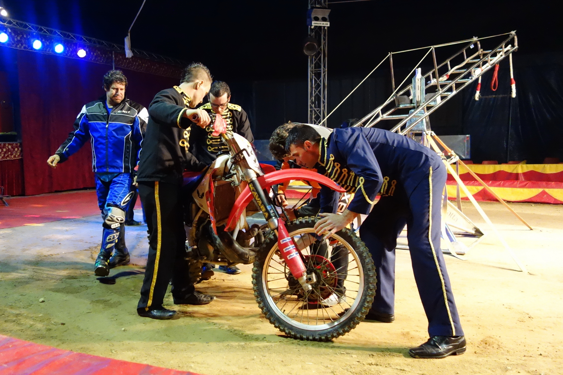 После этого начали готовить коронный номер - шоу с мотоциклом.