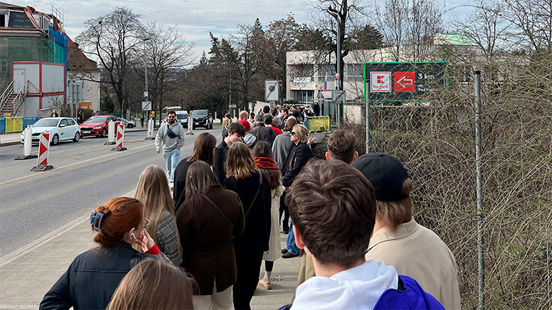 Вчера в российских консульствах некоторых стран Европы можно было проголосовать на так называемых "выборах" президента. Например, в Чешской Республике для этого был открыт один единственный избирательный участок. Туда выстроилась большая очередь, и люди стояли в ней по два-три часа - вот небольшой репортаж в "Пражском Экспрессе".