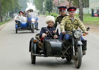 - Про казаков она тоже знает хотя вот видела нас впервые. Слышала про казаков в фильме Двенадцать мгновений весны, который сейчас показывают по России1, там в сцене где Штирлиц едет в поезде- и его попутчик кадровый военный и аристократ говорит фразу про "пархатых казаков". Мы, объяснили Карин, что аристократ должен был быть пообразованние и понимать, что словосочетание "пархатые казаки" звучит абсурдно- комментирует атаман Александр Пронюшкин