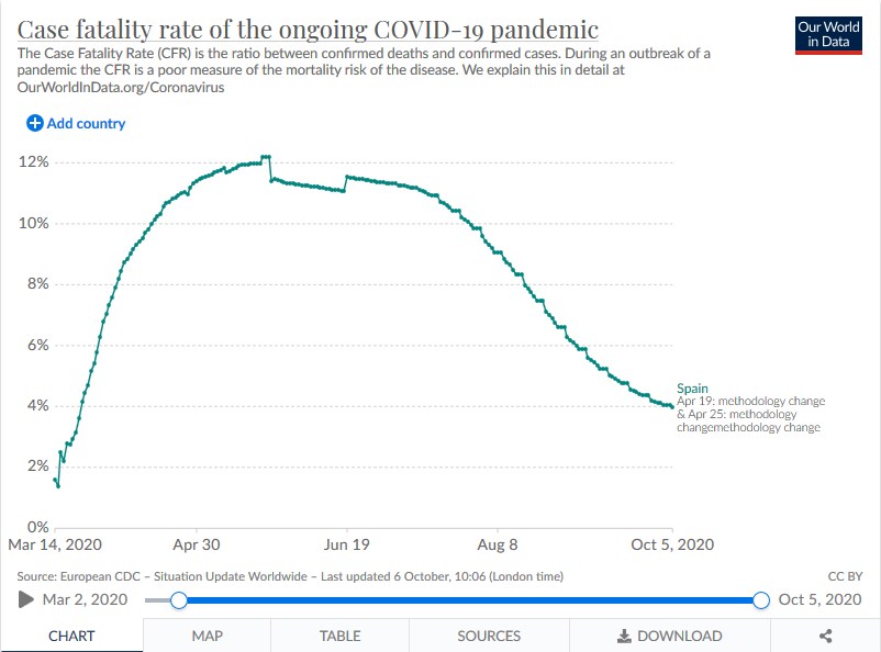 Поэтому повторения такой же высокой смертности, как была весной, быть уже не может (по крайней мере, хотелось бы надеяться, что большинство чему-то научилось за это время). Вследствие чего как раз текущие параметры летальности являются менее релевантными (применительно конкретно к характеристикам самого вируса, а не к общей статистике эпидемии – это крайне важный момент во избежание непонимания).