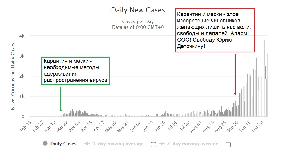 У меня цензурных слов по поводу этого, если честно, никаких не осталось. Я думал - ну ладно, в марте еще никто толком не понимал, что происходит и все слушали деятелей, типа Фергюссона, которые рисовал всякие дикие графики. Но сейчас-то уже все хорошо известно и все понятно. Тем не менее коронабесие чиновников не только не утихает, а даже совсем наоборот.