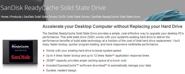 А сейчас стали выпускать отдельные SSD, которые также используются именно для кеширования - вот, например, Этот стоит в США $55-60, что вполне недорого. Покупаете, устанавливаете в компьютер, где система работает на жестком диске - получаете заметный прирост производительности. По идее разница должна быть очень даже заметной.