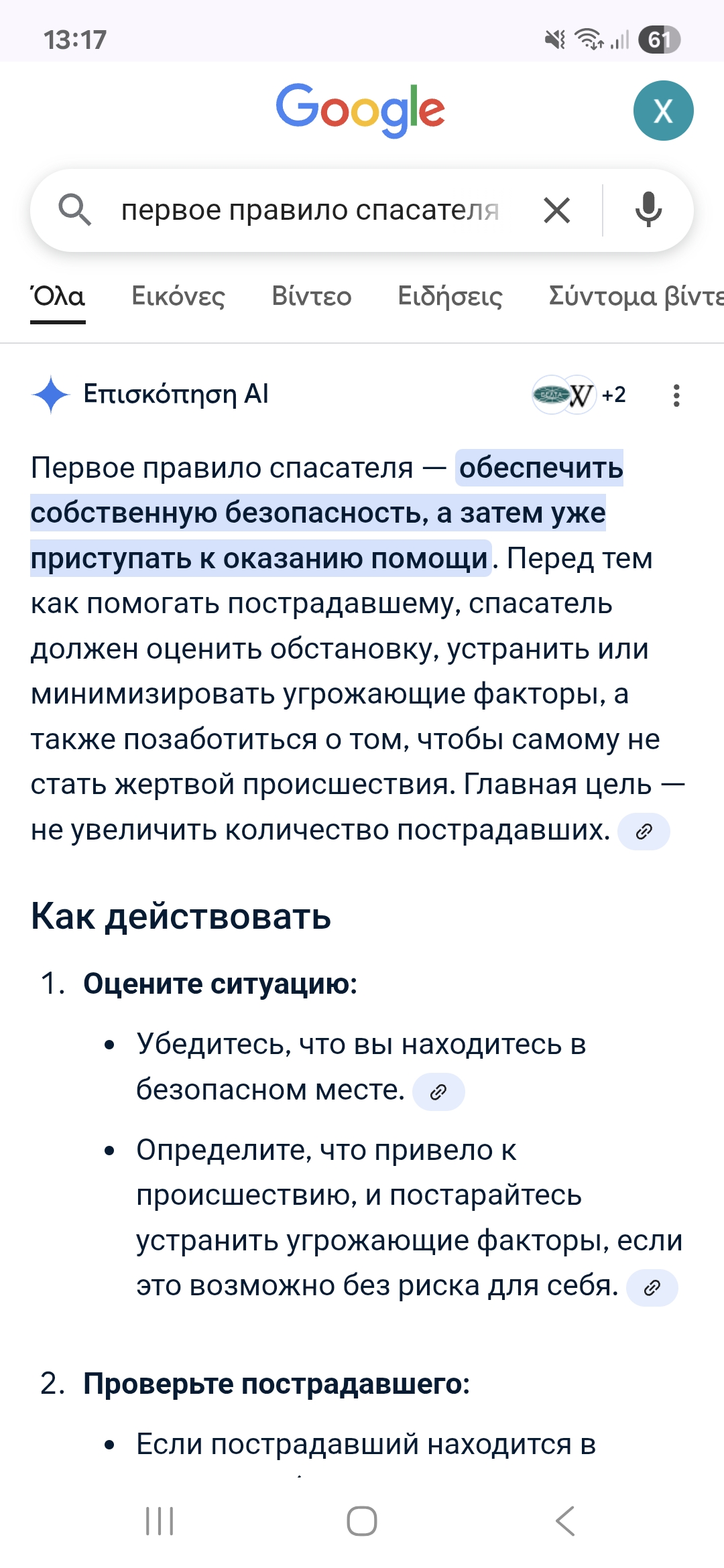Если тебя это не устраивает, набери в гугле "первое правило спасателя".