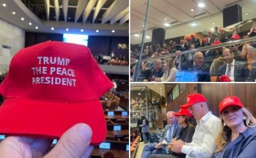 На израильских кепках, которые носят многие из тех, кто заполняет галерею для посетителей Кнессета, написано "Трамп - президент мира".