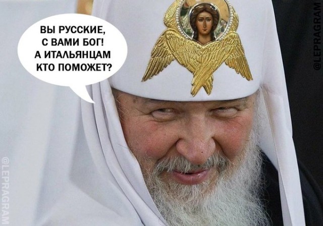 Но им надо взять это на вооружение. Отправит Трамп гуманитарную помощь в ту же Италию - "По По благословлению Святейшего Патриарха Кирилла Отдел внешних церковных связей вступил в контакт с православными бизнесменами, проживающими в Америке, которые на собственные средства организовали...". Почему нет-то? Зачем стесняться, раз один раз уже прокатило? Гундяев передал 8 тонн помощи, офигеть не встать!