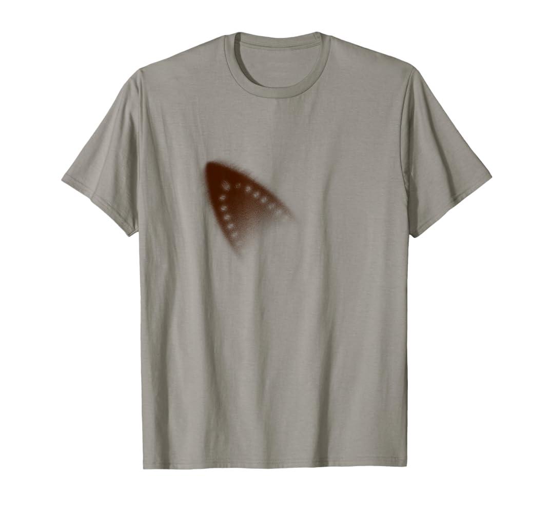 Вот примеры рубашек/футболок с принтом, стилизованным под след от раскалённого утюга — классический «scorch mark» дизайн.