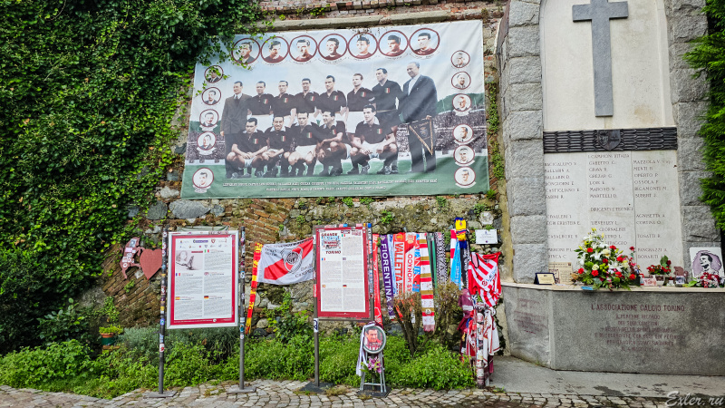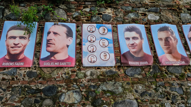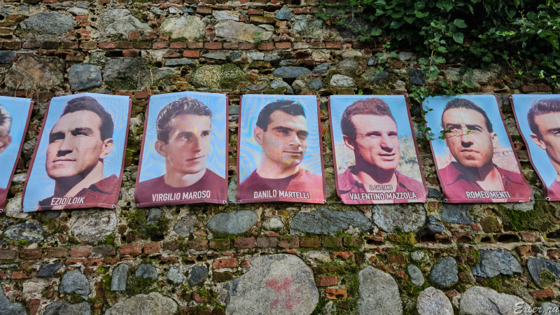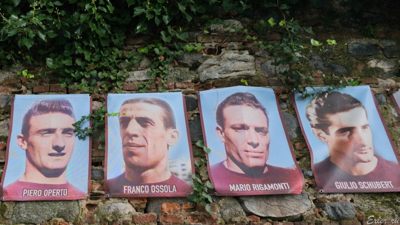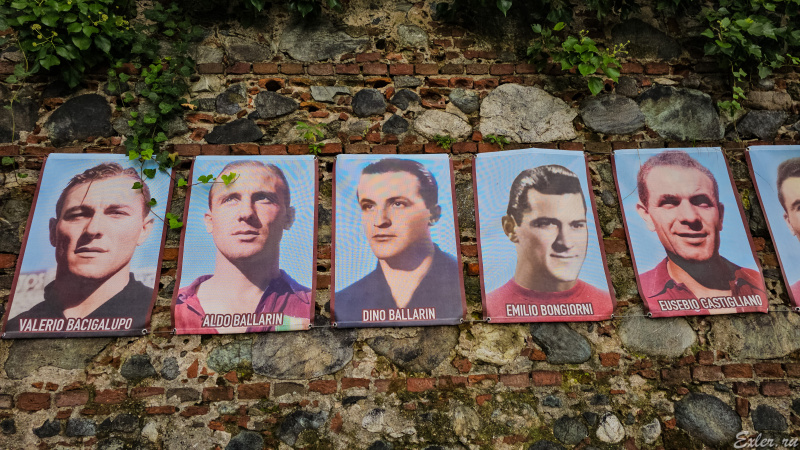 По пути к мемориалу на стене Базилики висят портреты с именами всех погибших игроков. "Торино".