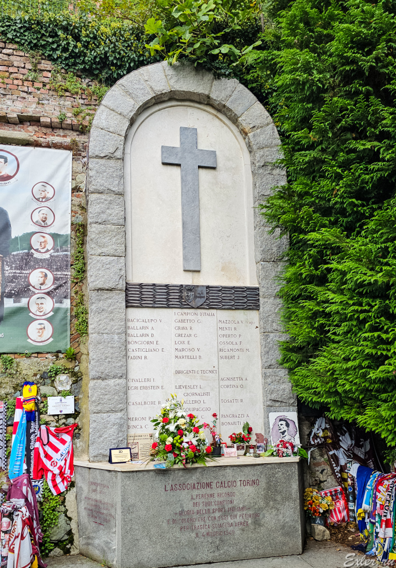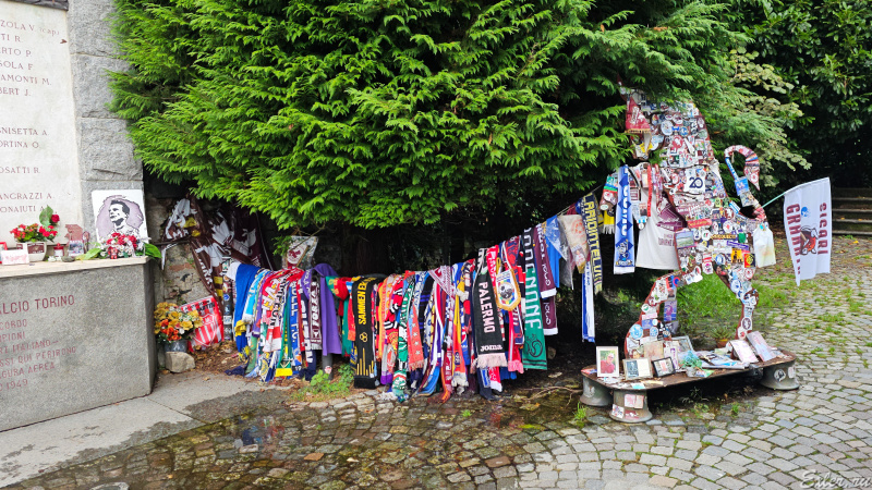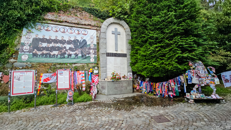 Вот этот мемориал, поставленный здесь в память о команде. Сюда постоянно приходят люди, и оставляют здесь различную символику любимой команды. Причем почтить память "Торино" приходят и молодые люди, которые матчи команды видели только в записи.