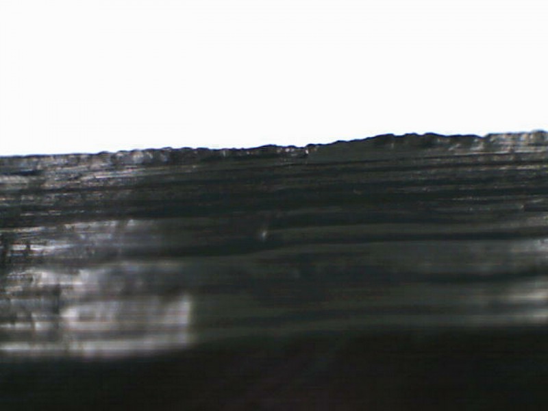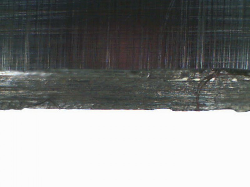 В теории агрессивный рез обеспечивают вкрапления карбидов. И при такой неровной заточке карбиды выкрашиваются и нож быстрее тупится.