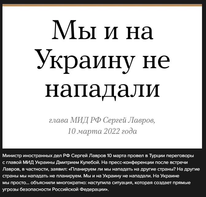 Это из той же рубрики, что и «Россия ни на кого не будет нападать. И на Украину не нападала».