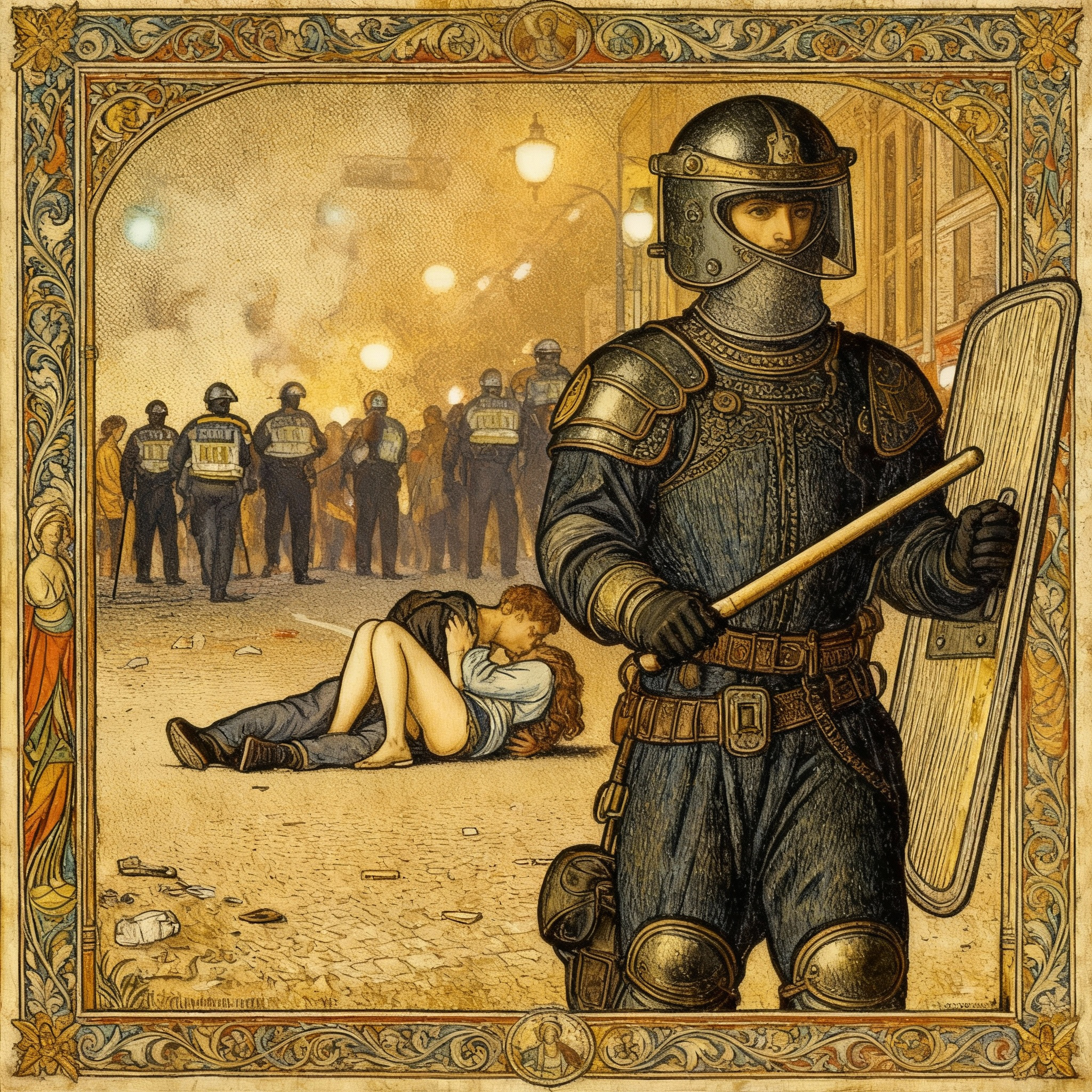 Пора бы уже наделать шедевров и из этой довольно известной фотографии 2011 года ("Canucks vs. Bruins final and Vancouver riots CREDIT: @WrongHeaded"):