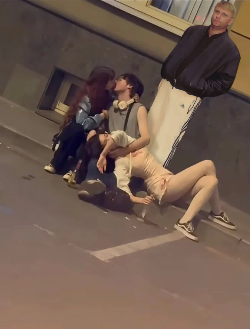 Надо же, эта фотография и варианты ее обработки с утра в моей ленте ФБ промелькнули. Еще пояснение было про то, что подруга парня перепила и отрубилась, а он в это время целуется с другой.