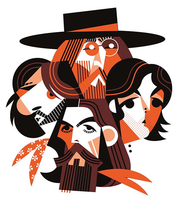 Своеобразные шаржи. Талантливо. Как и многие здесь, пятого не узнал. То ли особенных черт мало, то ли не настолько образ примелькался.