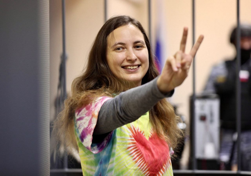 Художнице Саше Скочиленко дали 7 лет колонии за антивоенные стикеры в "Перекрестке" и антивоенные высказывания. Так называемая судебная система в России, которая, конечно же, никакая не судебная, а исключительно репрессивное, пробивает очередное дно.