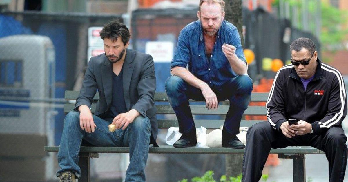 Это одна из фотожаб на тему "Грустный Киану Ривз". Теперь ее увековечили.