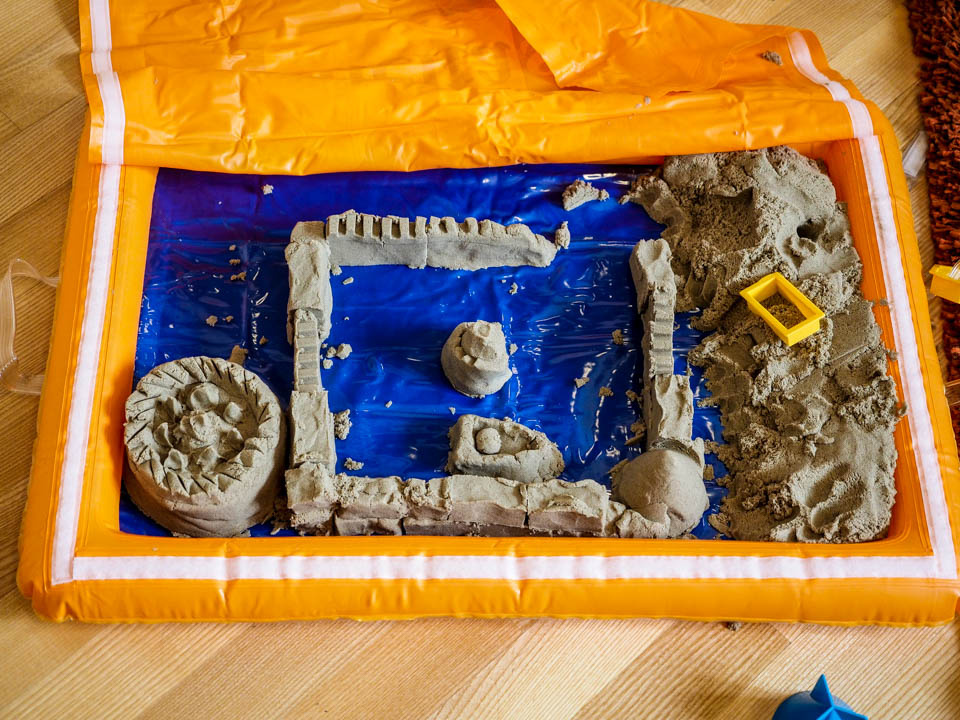 Забавная штука, я даже и не ожидал. Главное - ребенок в первый день отнесся к этой домашней песочнице как-то недоверчиво, а потом реально зафанател.