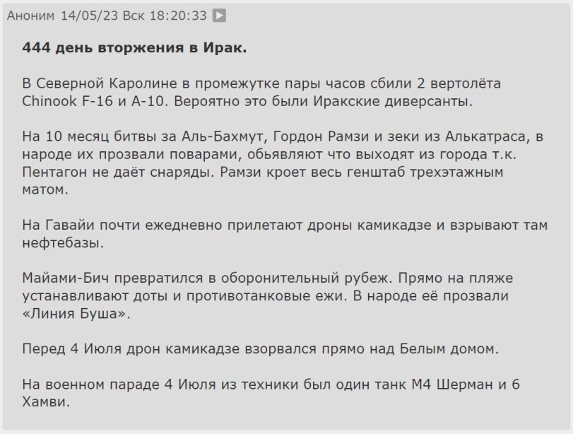 Вагнер проводит по сути гей-парад в Бахмуте. Наёмники ЧВК Вагнер публично обещают заняться анальным сексом с депутатом Госдумы Соболевым, генерал-майором ВС РФ в отставке, за то, что он критиковал владельца Вагнера Пригожина. Наёмники называют Соболева «престарелым пидором», и обещают депутату Госдумы приехать на Красную площадь в случае поражения РФ в войне и «от… бать тебя и таких как ты в жопу».