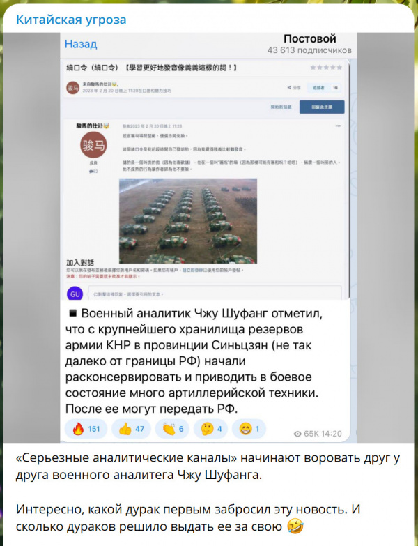 И вот еще в том же ТГ "Китайская угроза" пишут.