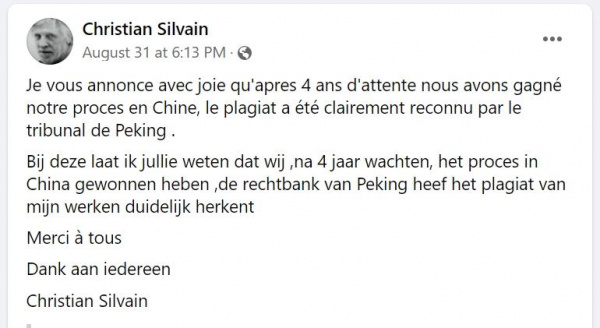 С 2019 года Сильвен добивался справедливости, и вот пекинский суд по интеллектуальной собственности обязал Юнцина выплатить Сильвену  компенсацию в размере 5 млн. юаней ($684 тысяч) - то есть фактически стоимость одной-двух его картин, и это при установленном факте плагиата 122 работ. Также суд постановил, что Юнцин должен немедленно прекратить свои нарушения и принести Сильвену публичные извинения в средствах массовой информации.