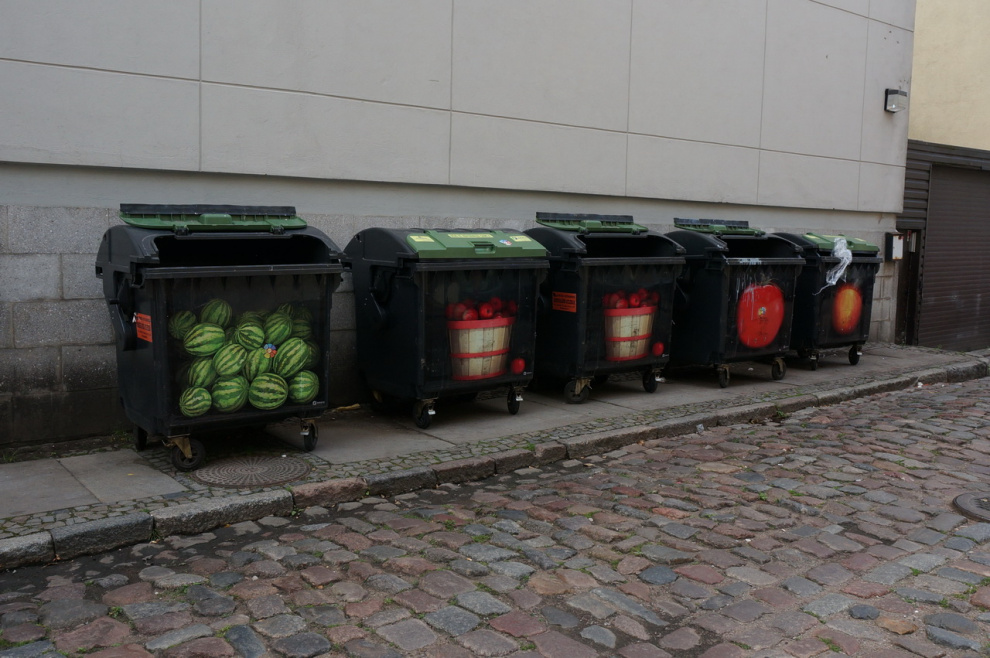 Мусорные баки тут очень игривые.