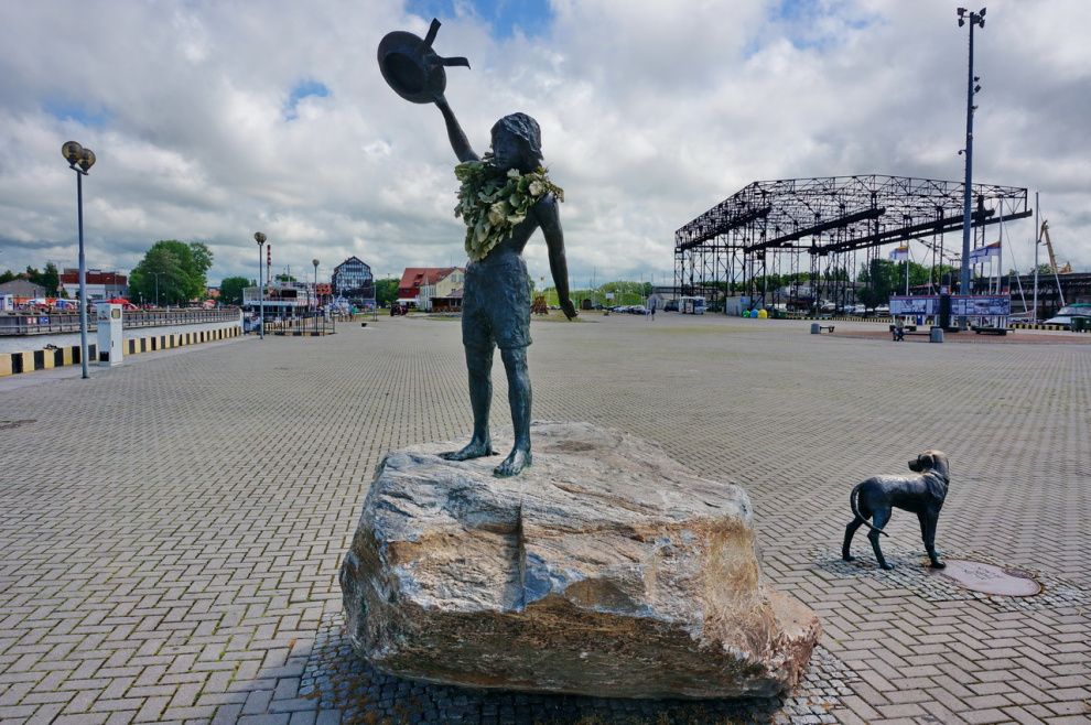 Памятник пацану и собаке, приветствующих моряков.