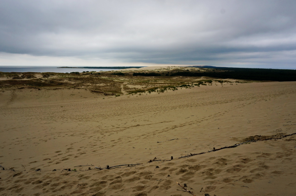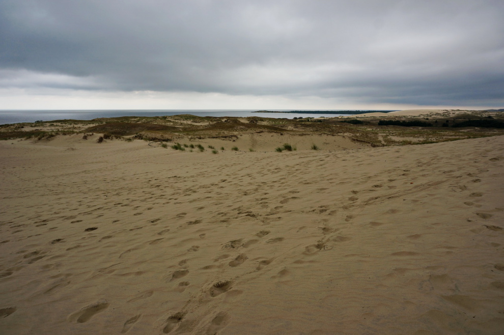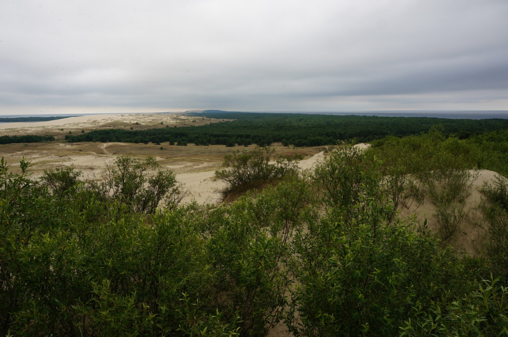 Вот они, дюны. Вдалеке проходит узкая полоска высаженных деревьев - это граница с Россией.