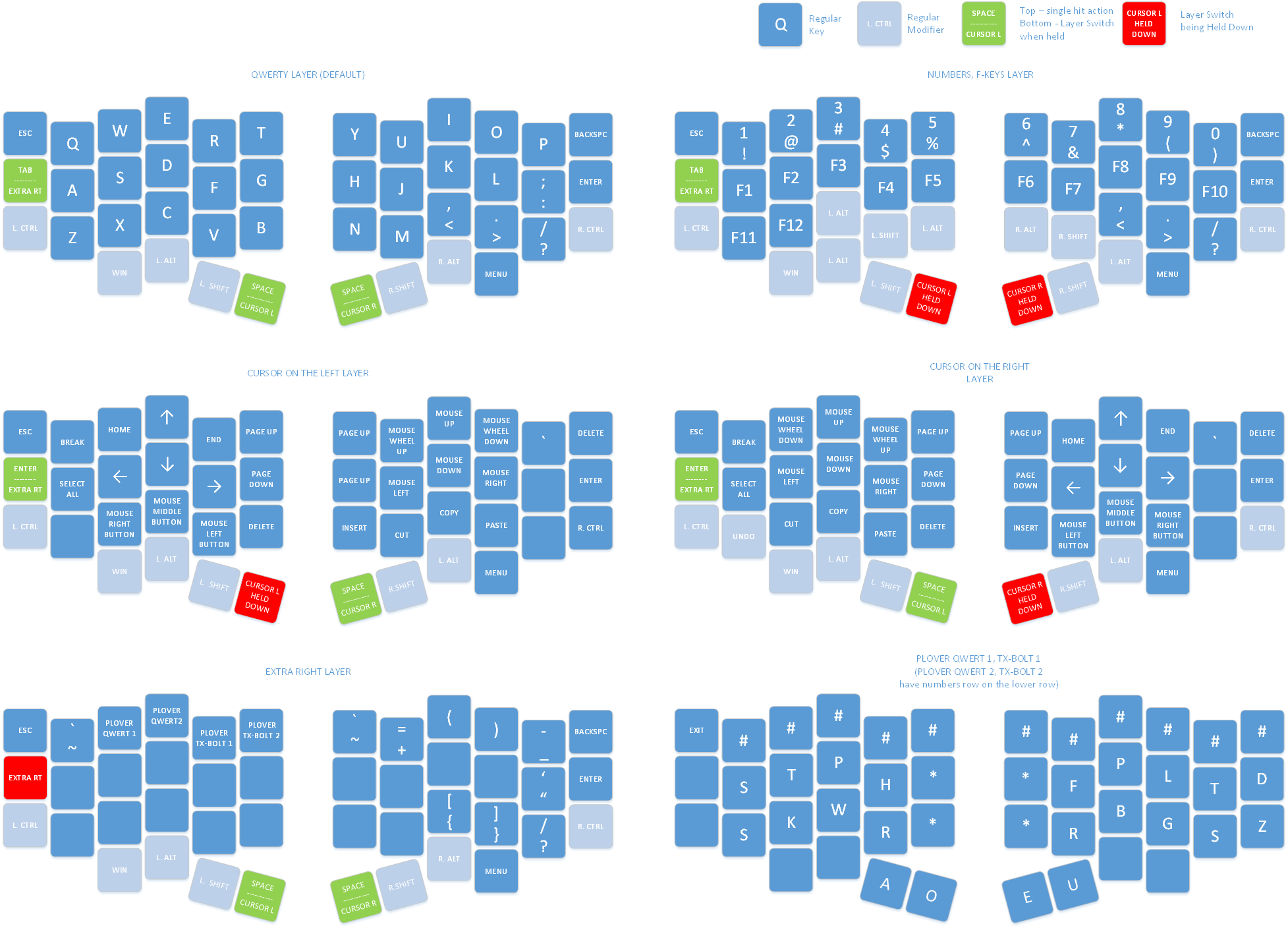 Мне уже не нравится то, что клавишу "пробел" ("space") возможно нажать лишь правым большим пальцем. Печатаю вслепую, обучен бить пробел то правым, то левым большими пальцами - в зависимости от того, пальцем какой руки была напечатана буква перед пробелом. На Кинезисе же буду нажимать "забой" ("backspace") вместо "пробела" в половине случаев, так не годится.