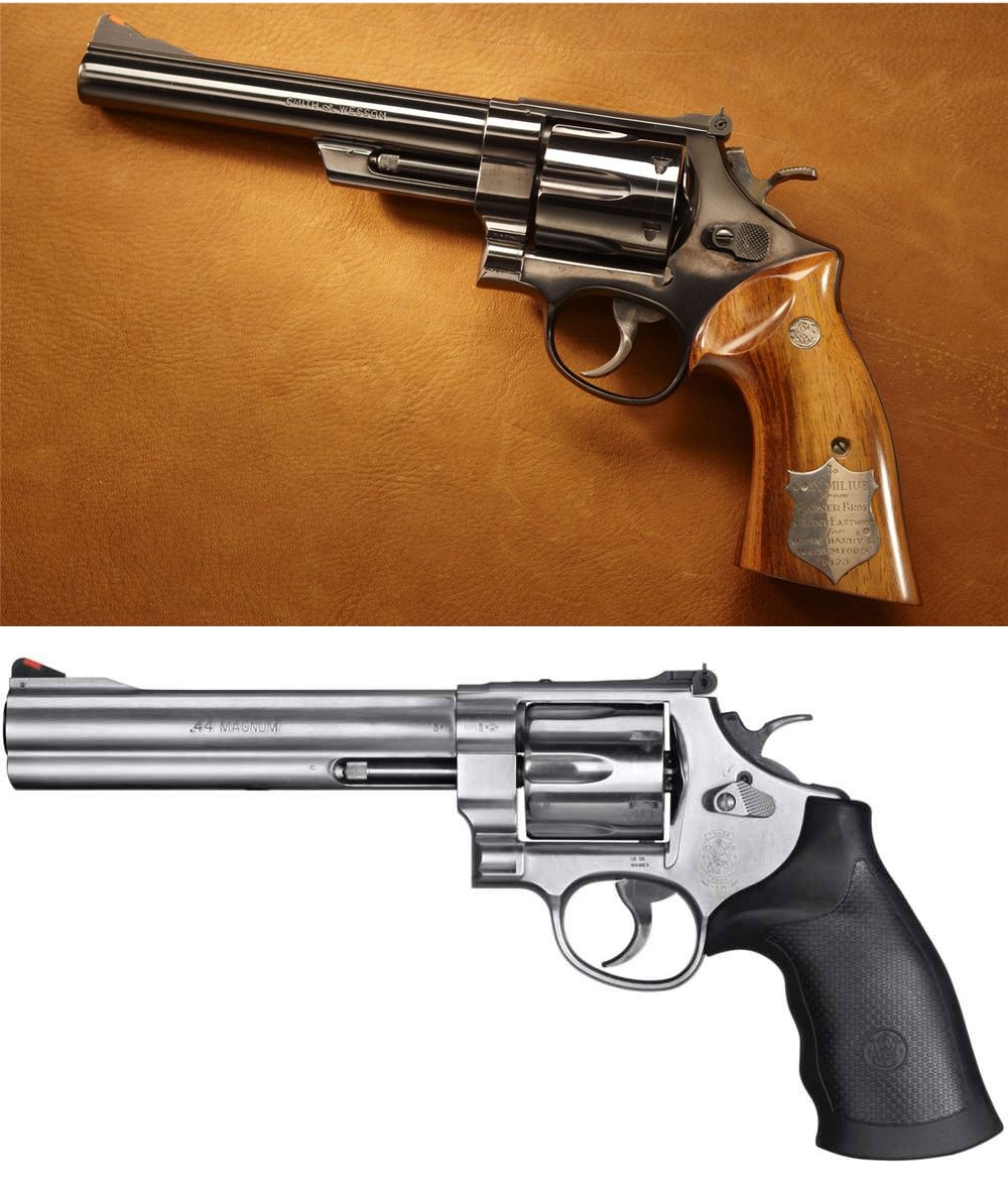 У Грязного Гарри был Смит-Вессон модели 29 в калибре .44 магнум, мощный красивый револьвер, но в те годы выпуска у них был небольшое слабое место в конструкции запирания барабана, в более поздних версиях 29-й и 629-й модели, они это устранили, но это уже не револьвер Гарри.