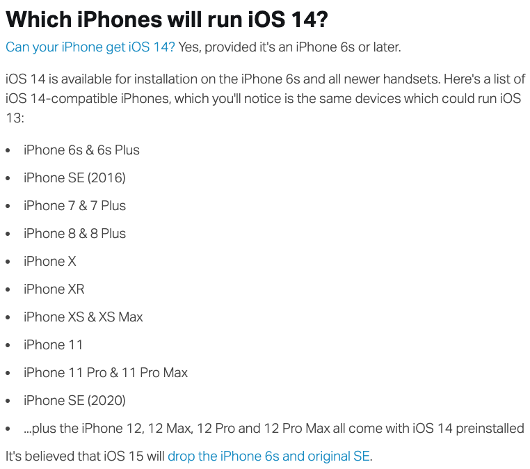 Ну и странно жаловаться на поддержку шестого айфона, это всё-таки 2014 год. Он вышел с iOS 8.0 и поддерживался до 12.5.1. Для сравнения, его одногодок Samsung Galaxy S5 вышел на андроиде 4.4.3 и дальше 6.0.1 не ушёл.