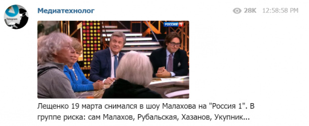 А вот здесь пишут, что 19 марта он был в передаче у Малахова.