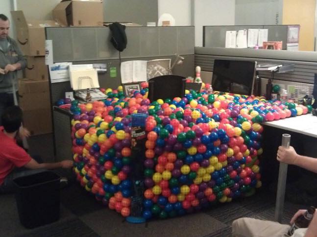Слушайте, я за всю жизнь менее полугода проработал в помещении, где сидит пара десятков других сотрудников. Кто много в таких условиях работал: действительно существует традиция всячески разукрашивать рабочее место сотрудника к его выходу из отпуска? А то я смотрю - люди проявляют большую фантазию.