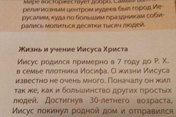 В учебнике по ИСТОРИИ публикуют жизнеописание Иисуса? Шарман, шарман...