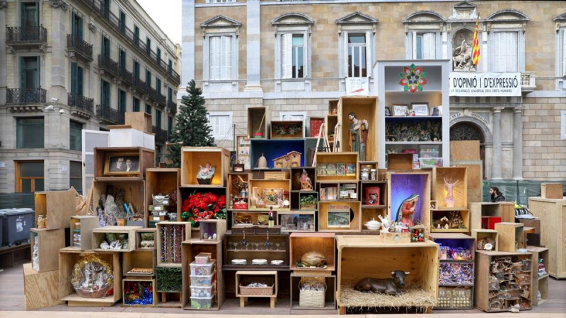 В честь этого знаменательного события в Барселоне установили вот такой рождественский вертеп (это называется белен) из коробок. Как говорят местные, сооружение обошлось городскому бюджету в 97 тысяч евро. Народ подсчитывает реальную стоимость этого дурдома и пытается понять, сколько же денежек прилипло к рукам алькадессы Ады Колау, при которой до чего же красивой стала Барселона.