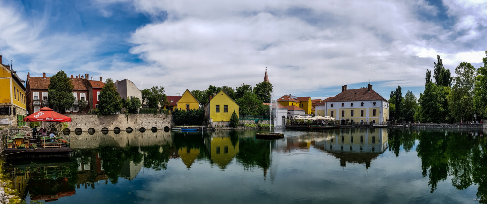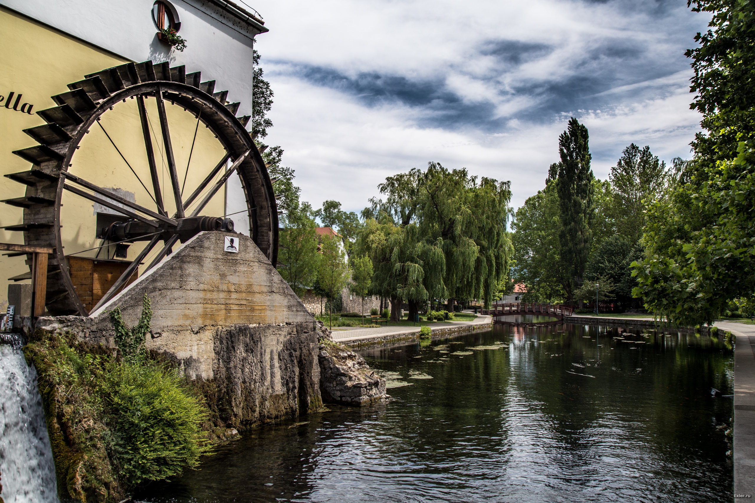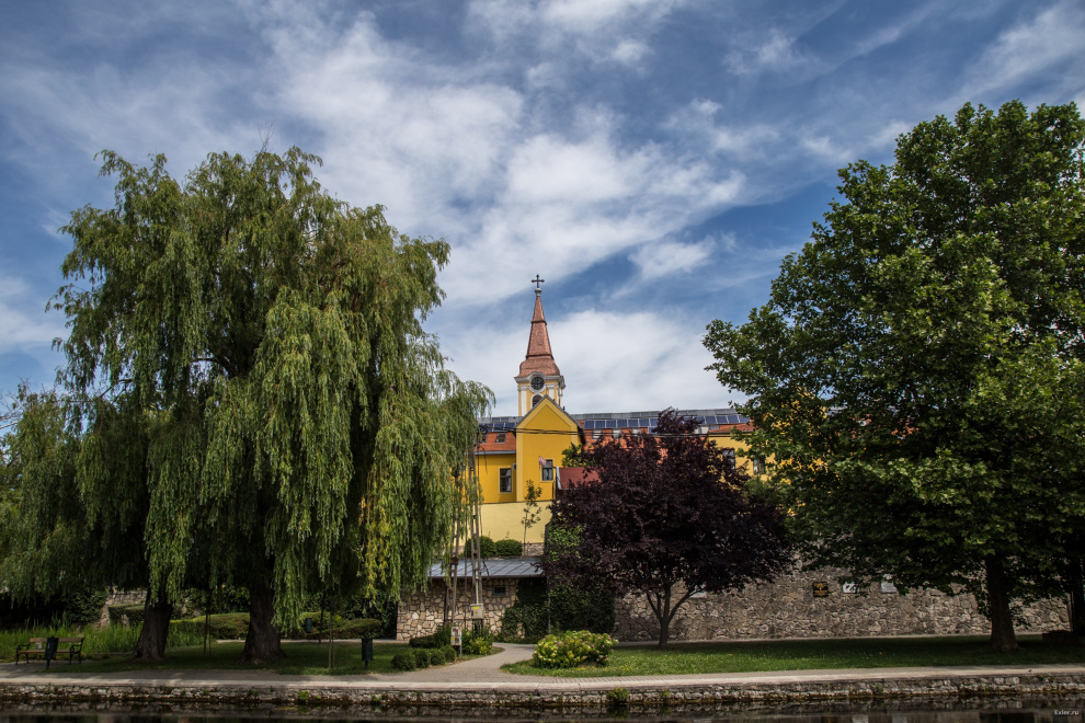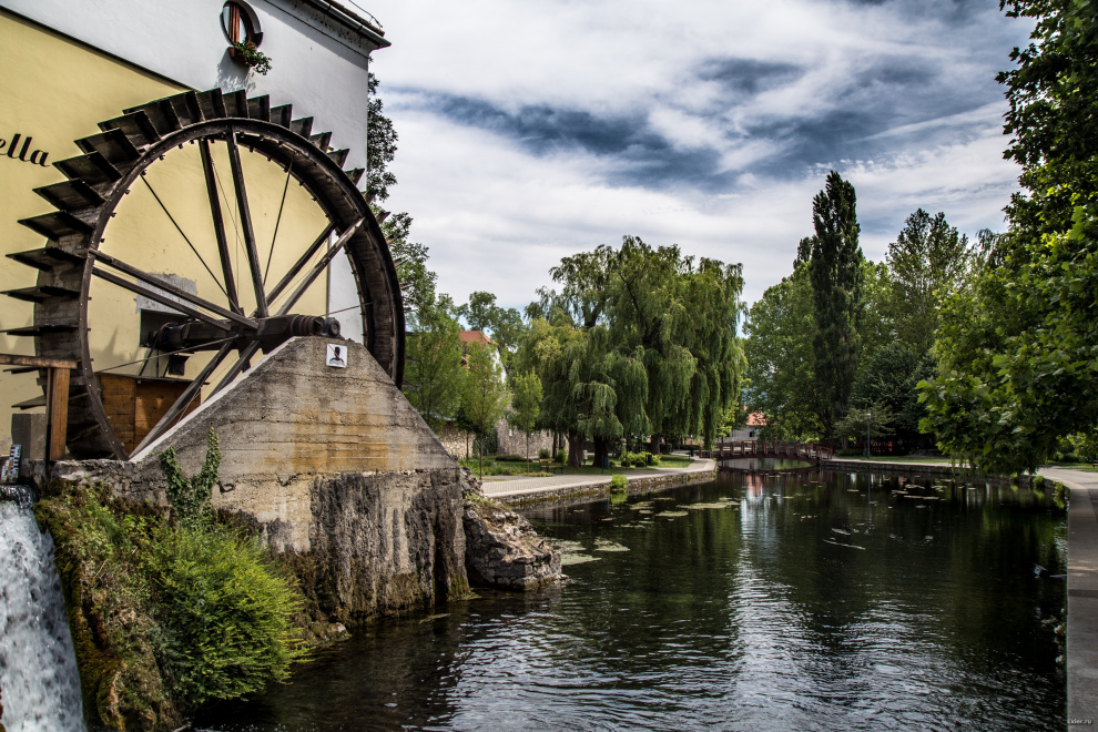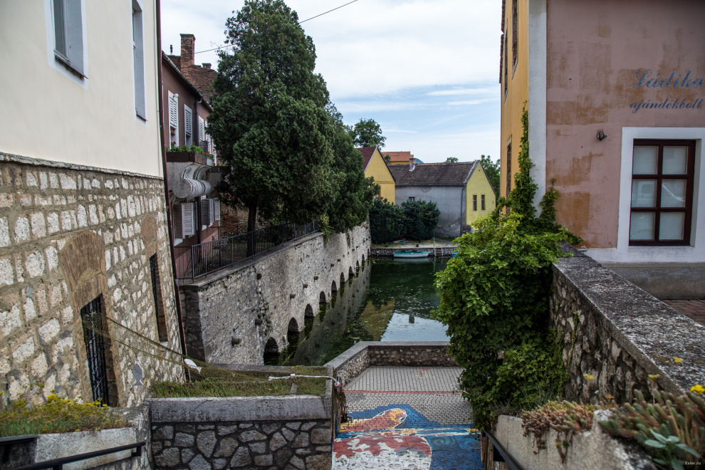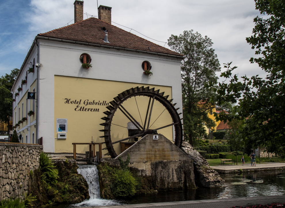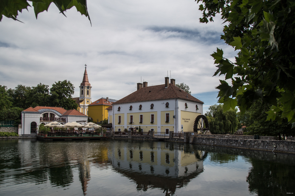 Водяная мельница - полностью рабочая: в том смысле, что колесо крутится и черпает воду в отель "Габриэлла". Почитал отзывы на этот отель в Booking, был потрясен записью: "Отличное расположение, у нас прямо под окнами - озеро Балатон".