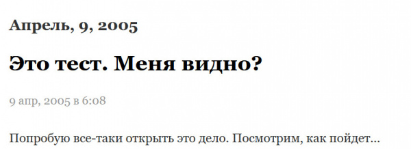 И вот 9 апреля 2005 года я сделал первую запись - хотел на этом ЖЖ просто начать обкатывать блог как таковой.