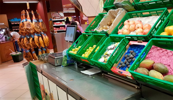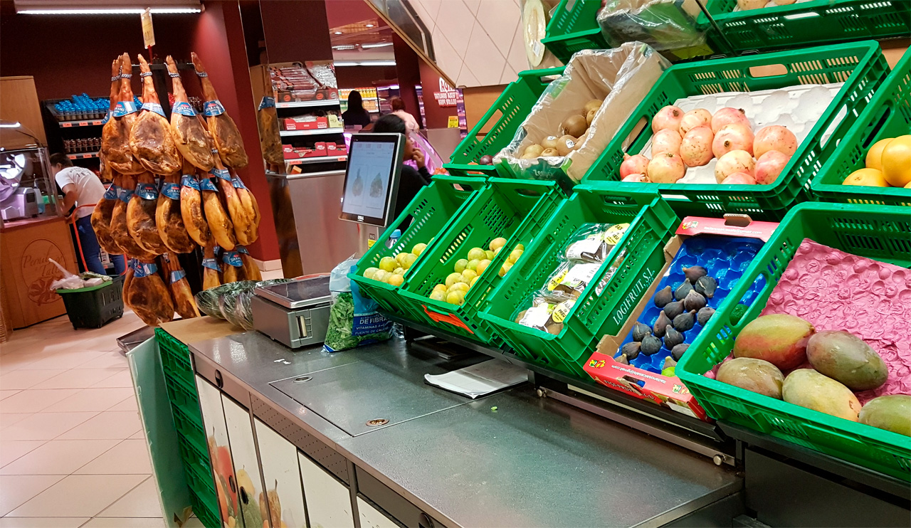 В Испании тоже во многих сетевых магазинах взвешивает кассир.