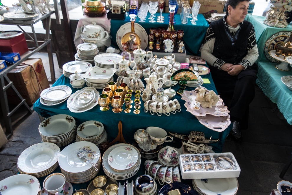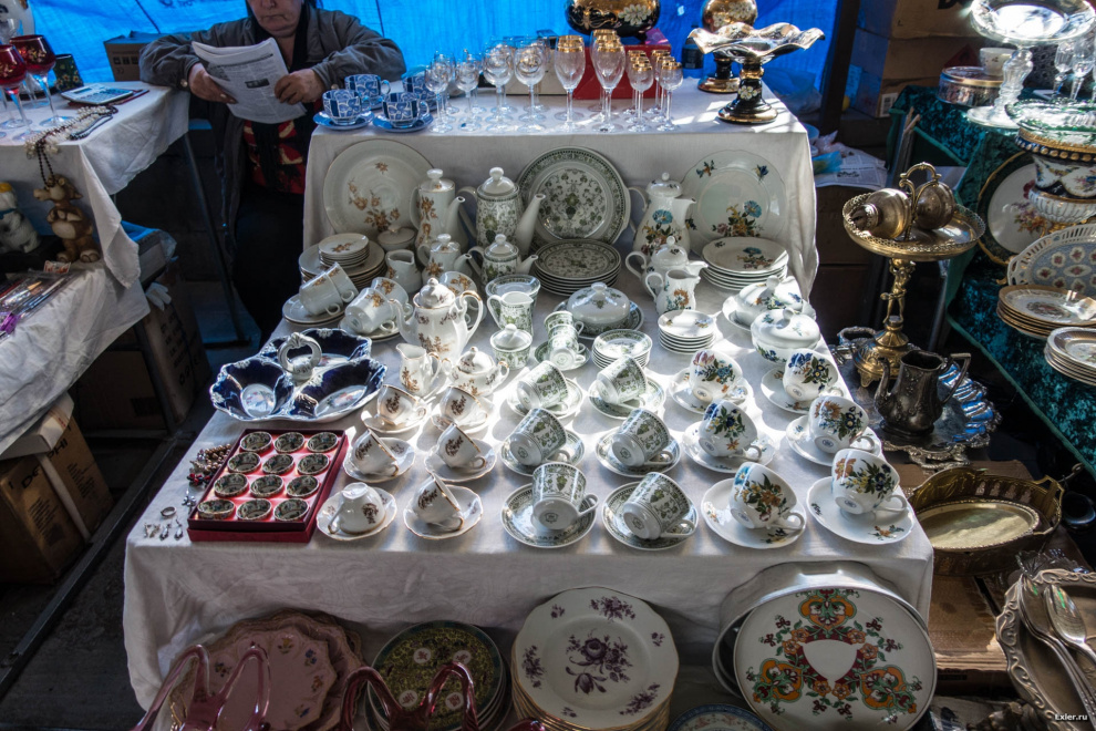 На ярмарке был целый здоровенный ангар со всякой колоритной посудой в стиле наших бабушек-дедушек. Некоторые сервизы были очень красивы, хотя я бы себе такой не взял: я люблю модерновый стиль во всем, а не ретро.