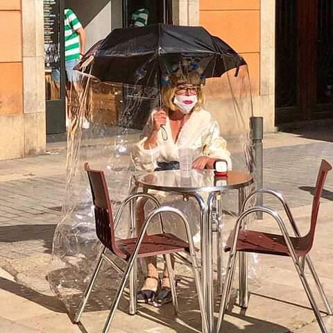 Испанская сеньора вышла выпить кофейку в кафе. (Фото не мое, в группе городка запостили.)