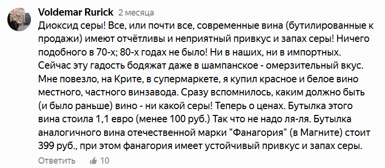 Нормалек! Не было бы таких комментаторов, было бы скучно жить! Да и вообще, мог ведь товарищ принять вина без серы?!? Мог, органик сейчас в моде. А вкус, это дело субъективное, на вкус все фломастеры разные.