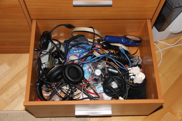 Ну я вот ни разу не гик и не техноманьячка, и вообще,я врожденная блондинка,но "коллекция"проводков,кабелей, дисков разного типа не умещается в ящик стола!ОТКУДА!!