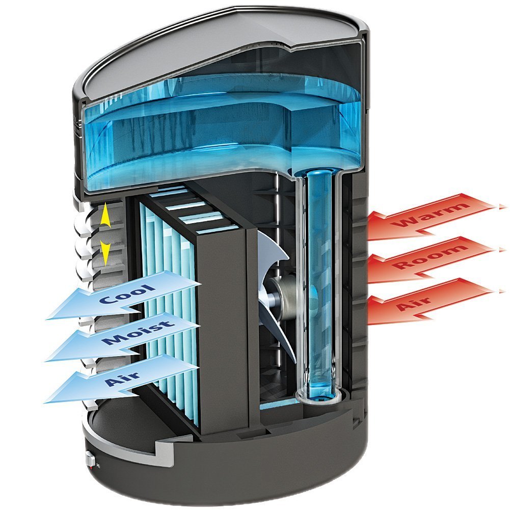 Эээ. А за счет чего он охлаждает? Фреона нет, а кто тепло уносит?физика, милая.Жидкость (а вода - жидкость), испаряясь, отнимает у продуваемого воздуха тепло. Другое дело, что пар, конденсируясь, это тепло должен чему-то отдать 😄 .Обычно в таких системах есть не показанная на картинке толстая труба, через которую отнятое у воздуха тепло выносится за пределы помещения, которое охлаждают.Но есть конструкции, которые заполняют смесью воды со льдом (который еще нужно наморозить сначала), те до полного таяния льда холодят без необходимости отвода горячего воздуха.есть испарительные системы, работающие не на фреонах, а, к примеру, на пропане (скажем, подобные ставили в автокемперы), или на аммиаке ( у нас был такой холодильник, работает бесшумно, компрессора в нём нет).